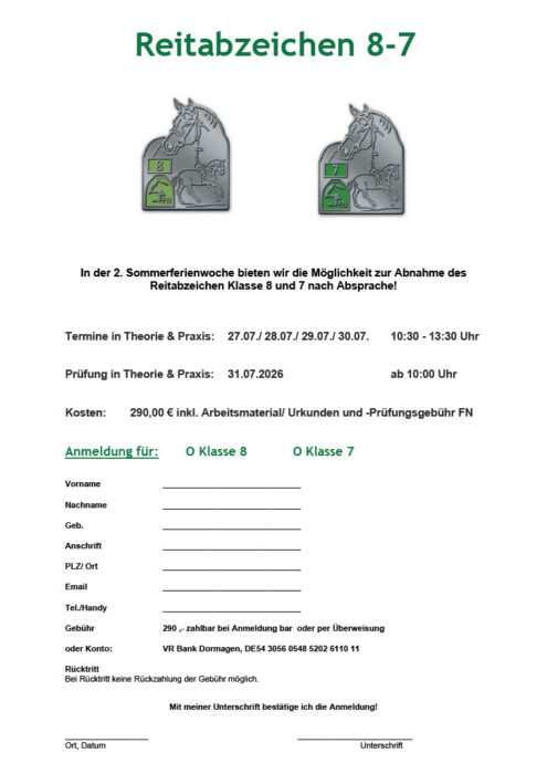 Lehrgang Reitabzeichen 7 ist ausgebucht!