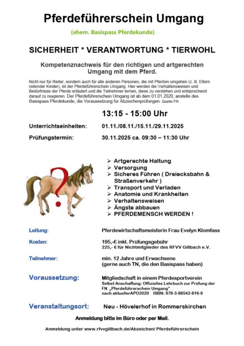16. Mai 2013, Allgemein,.Reit- und Longestunden müssen 24 Std. vorher abgesagt werden. Dies bitte nur im Büro, telefonisch oder per Email. Nicht abgesagte Stunden werden als geleistete Stunden verrechnet, dies gilt auch im Krankheitsfall. Augemachte Nachholstunden verlieren ihre Gültigkeit bei Absage der Termine! Nachholstunden werden nur noch per Email vereinbart!