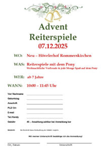 Advent – Reiterspiele 07.12.2025 10:00 – 11:45 ausgebucht!