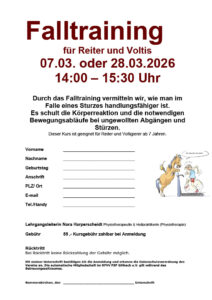 Falltraining für Reiter und Votlis 07.03. oder 28.03.2026 14:00 – 15:30 Uhr