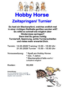 Hobby Horse Turnier / Zeitspringen 14.03. & 21.03.2025 13:30 – 15:30 inkl. Turnier