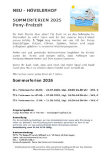 1. / 3./ 5. Sommerferienwoche – Ponyfreizeit 10:00 – 16:30 Uhr