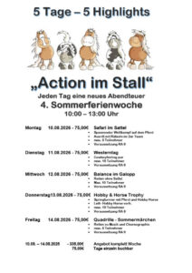 2 Sommerferienwoche Lehrgang mit Prüfung zum Reitabzeichen 8 und 7 10:30 – 13:30 Uhr